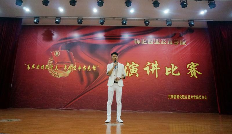 来自机械与汽车工程系的舒采红所演讲的题目是《高举团旗,争做有为青年》,他将自己成为一名合格的团员后在初中和高中做的两件事分别作了简单的阐述,号召同学们拿出青年的勇气、智慧、风采和力量高举团旗、争做有为青年。凭借着突出的表现,他最终获得了演讲比赛的一等奖;动科系的严鑫、商贸系的杨秋燕获得了二等奖;商贸系的罗湘粤、刘威、李岩英获得了三等奖。