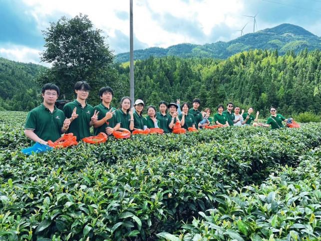 在大高坪苗族乡,实践团深入茶叶、钩藤、茶油种植基地进行实地调研。在生态茶园中,一场别开生面的“语茶同行”推普助农直播火热开场,成员们利用自身专业知识,结合大高坪乡山高温差大的地理特点,一边采茶助农一边将手机化作”新农具”,通过”普通话培训+直播带货+文化传播”三维模式,为当地“土经济”插上数字化翅膀,用青春力量架起”云端金桥”,用实际行动推普助力茶香出深山。据统计,本次直播累计观看人次达1.2万。
